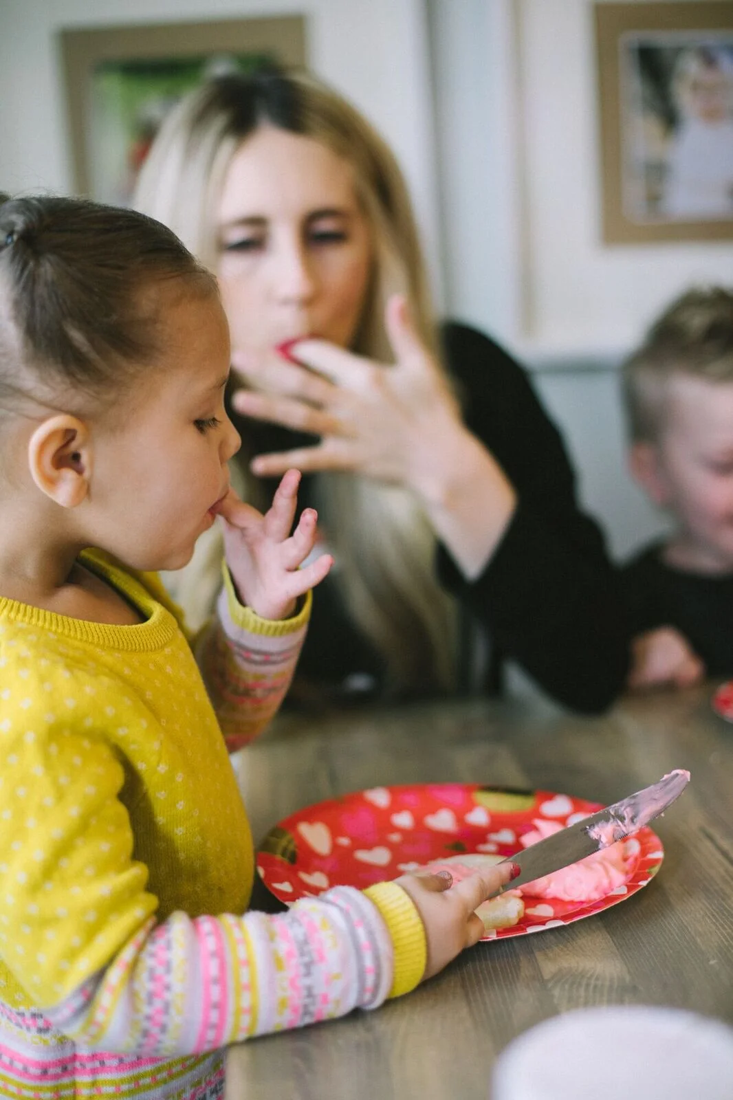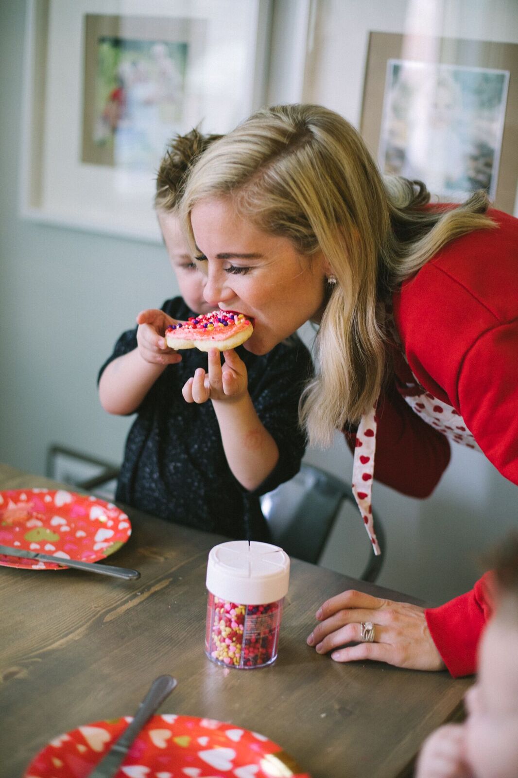 We usually make these during holidays, and there would never be a wedding or family gathering with out them either! Valentine's Day was always a holiday that required Sugar Cookies, if we didn't make them the neighbors may have haunted us down! It is our family tradition to "Kick Valentine" cookies at our neighbors doors and run. It was my favorite part about Valentine's, and can't wait to continue this tradition on with my own kids.