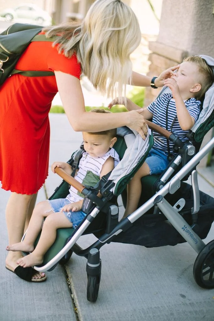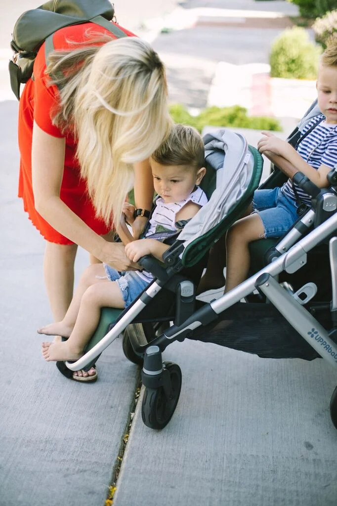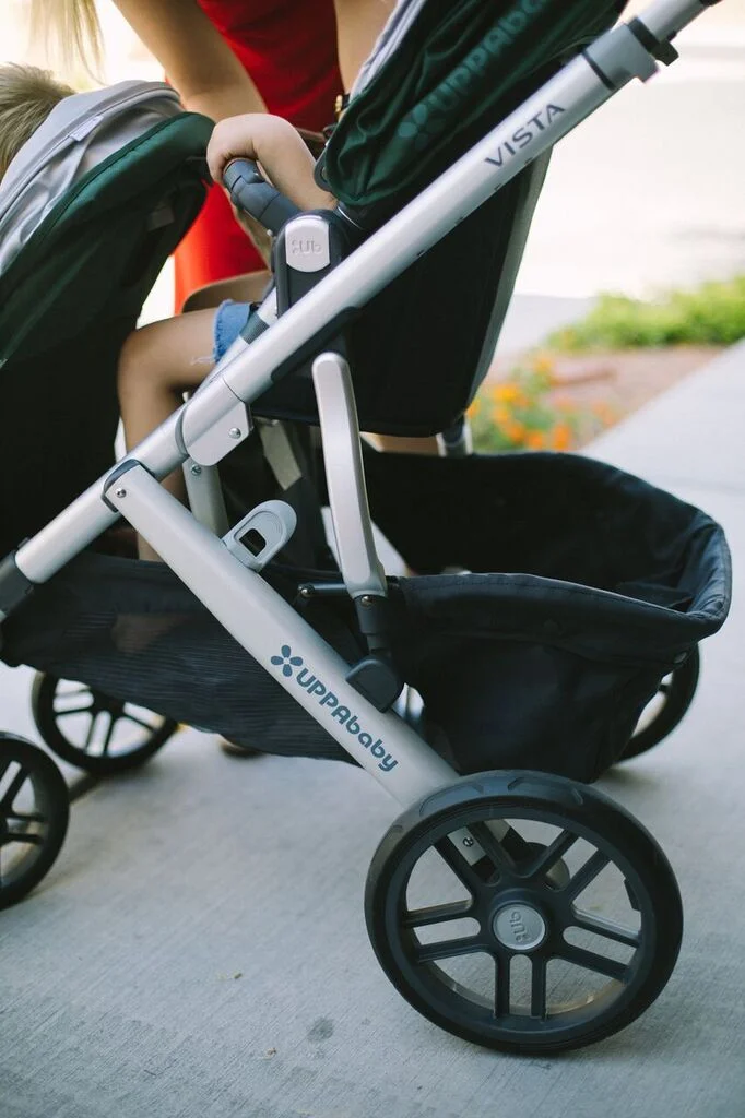 Now for function, the Vista stroller comes as a single stroller, however a Rumbler seat can be purchased to add on the second seat. This works perfectly for my two right now. If Parks is at school, I can use the single while I'm just with Lux. If we go as a family, we connect both and go on our way. The seats simply click in and click out with ease. With two seats connected there are three different ways to place them, both forward, both backwards, or one front and one back.